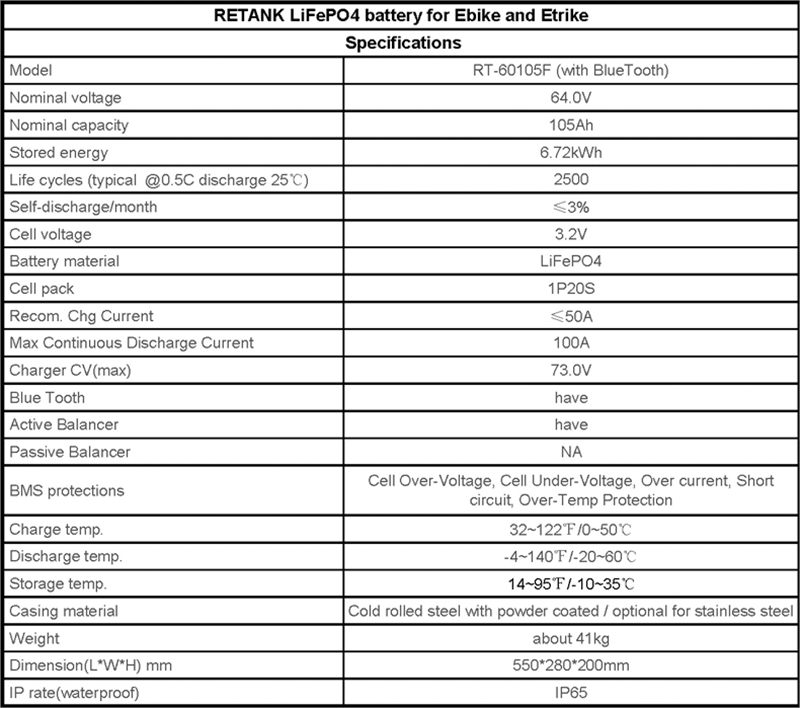 60V 105Ah LiFePO4 Battery,Suit for most of 60V E-Bike/E-Trike. Suggest: 2500W max motor,100A max Continuous Discharge Current,Match with:two Three wheeled electric vehicles,wheeled electric vehicles and four wheeled electric vehicles.